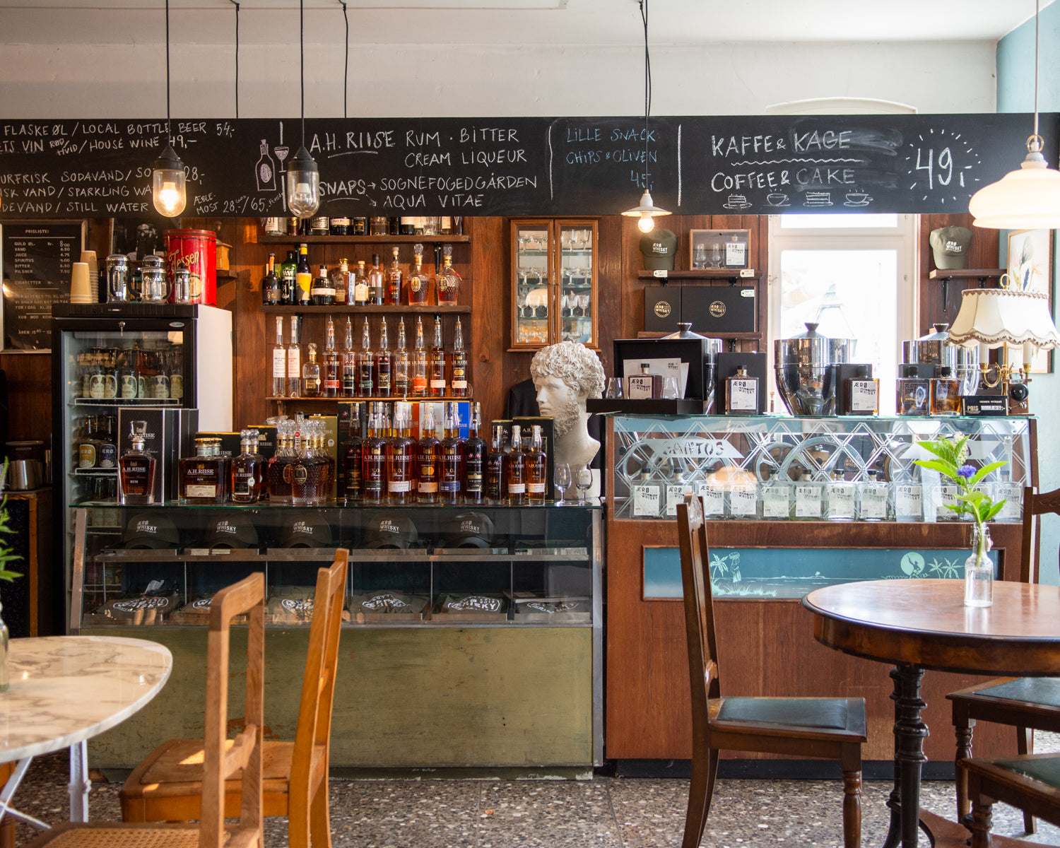Vores café er byens hyggeligste mødested. Det er stedet, hvor du altid kan møde nye mennesker og opleve den helt specielle stemning af ærøsk samhørighed. I caféen sidder du blandt lokale og nøje udvalgte varer, og der er altid liv og stemning. Hvis du skal spise eller drikke, får du selvfølgelig lækkerier, der er fremstillet med kærlighed og købt så lokalt og økologiskproduceret som overhovedet muligt.
