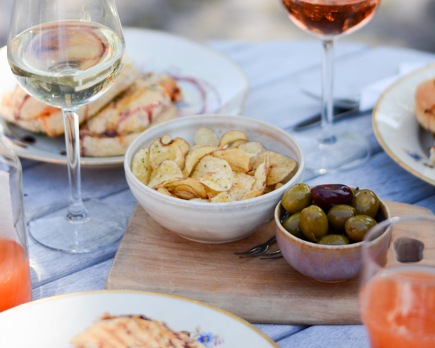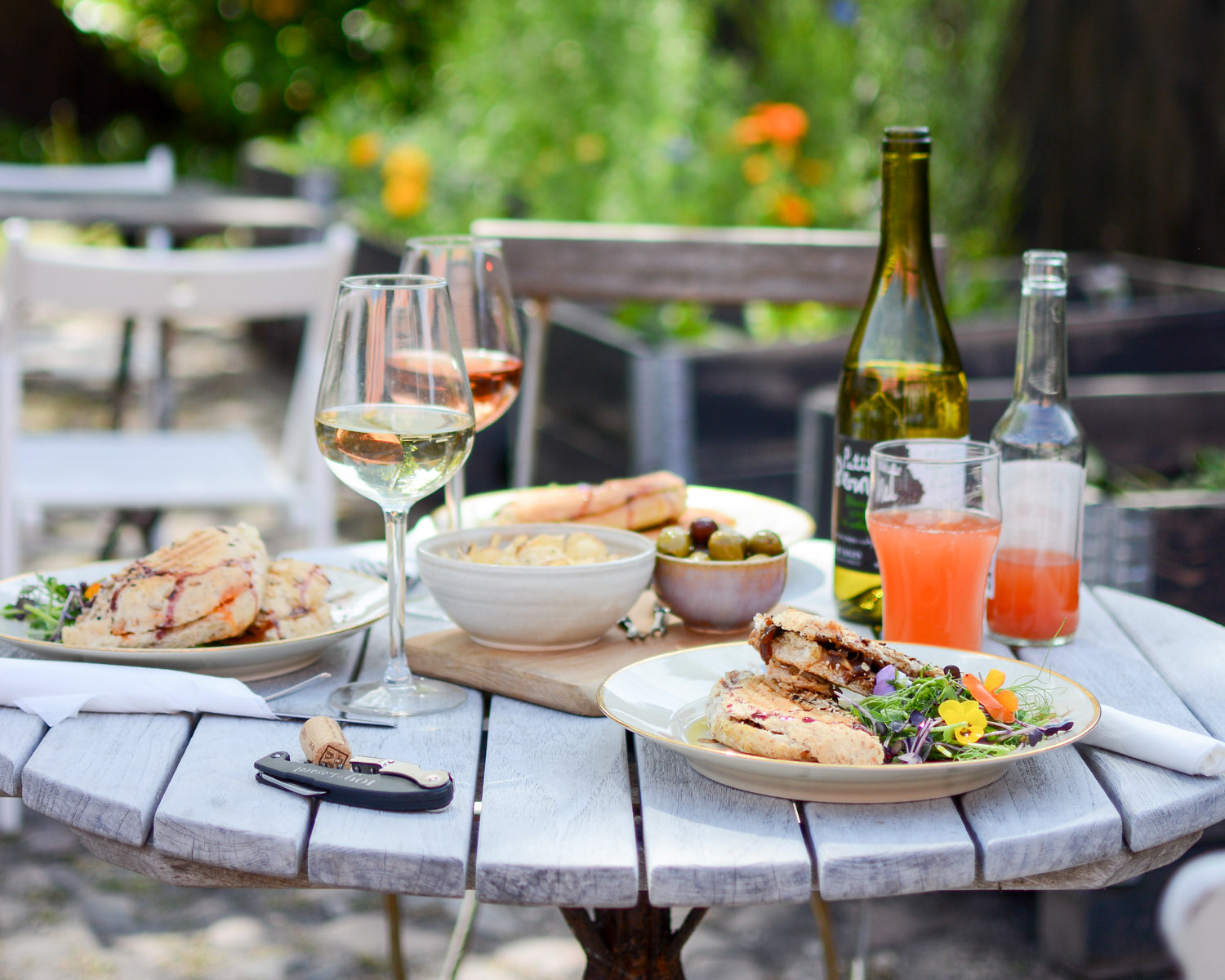 I sommerhalvåret kan vores gårdhave for alvor nydes. Her sidder du blandt spiselige blomster og urter. Vores hyggelige udebar er bemandet af vores højt kvalificerede barteam: Magnus, Thomas og Lennart, som skænker, shaker og dekanterer lokale, kolde fadøl, lækre drinks, økologiske vine og den lokale Ærø Whisky til dig.